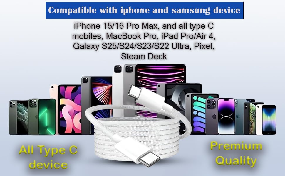 2M USB C Cable Nylon Braided 240W PD 3.1, Fast Charging Type C to Type C Cable
