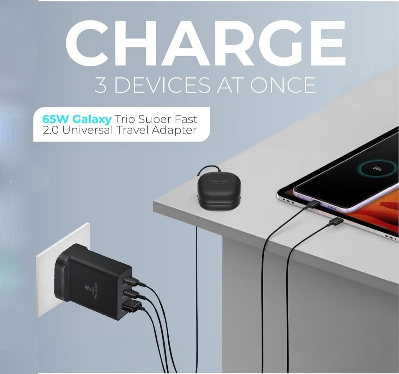 Power up at maximum speed with the 65W Super Fast Charger including a 1M USB-C cable. Designed for rapid, safe, and efficient charging of smartphones, tablets, and laptops.