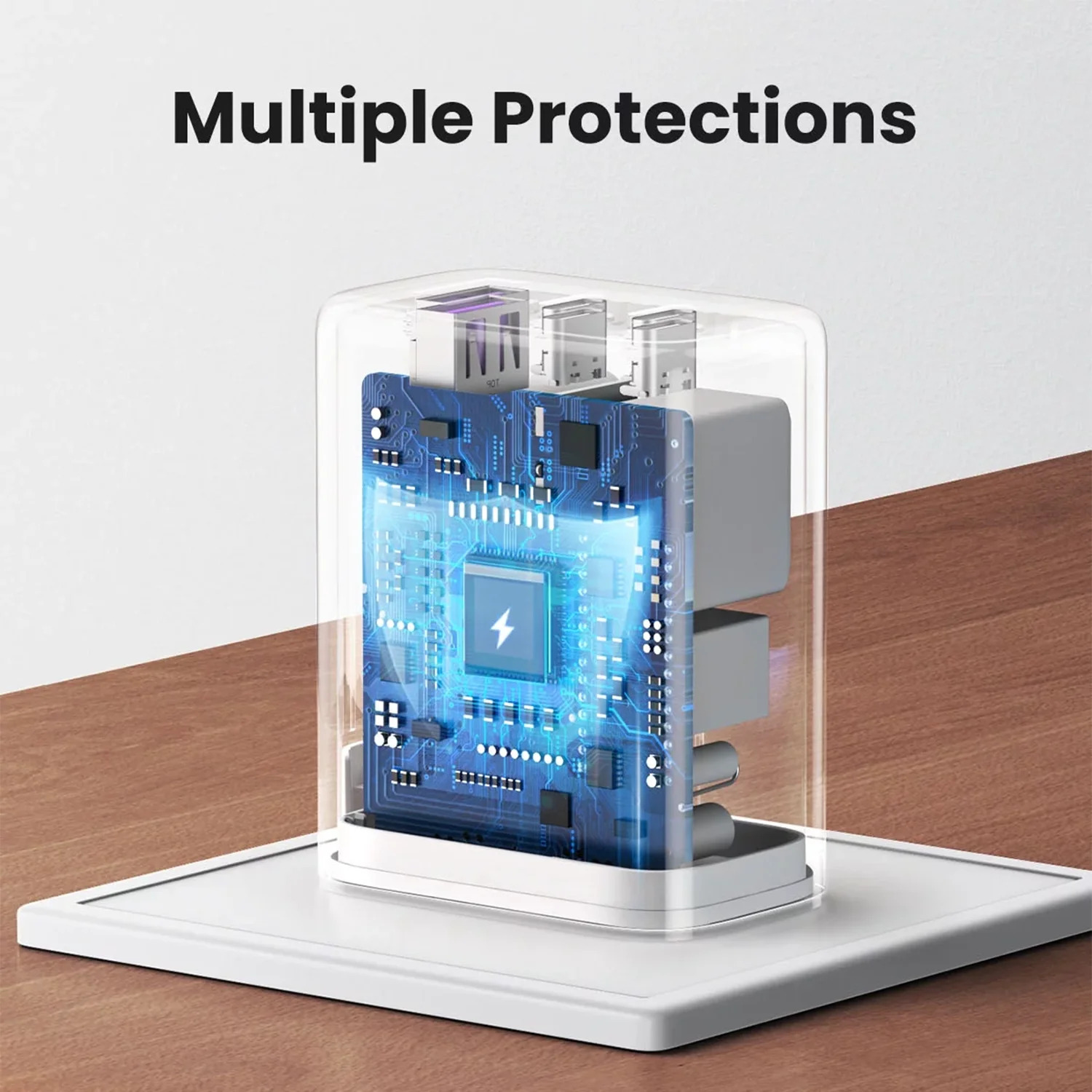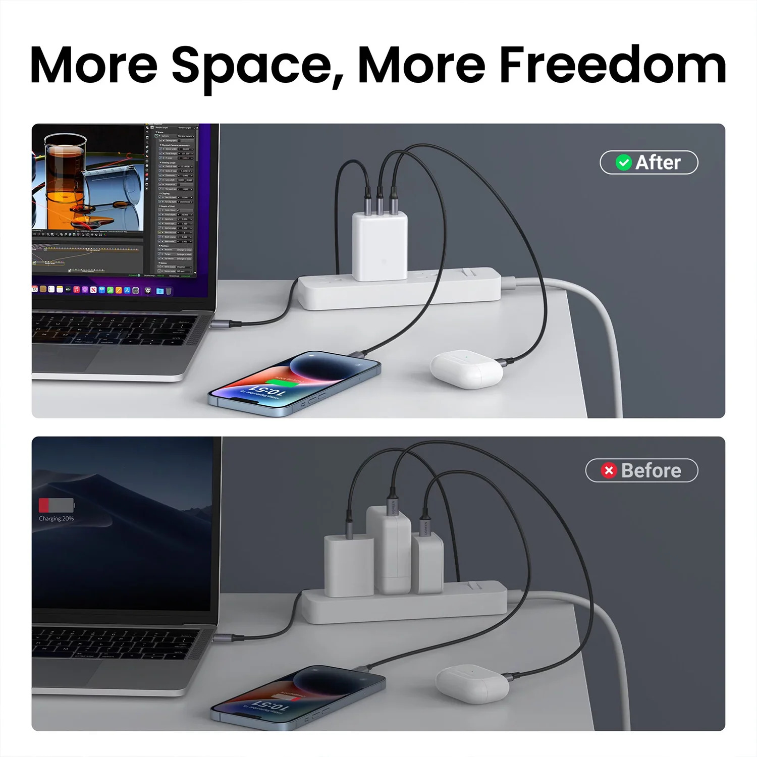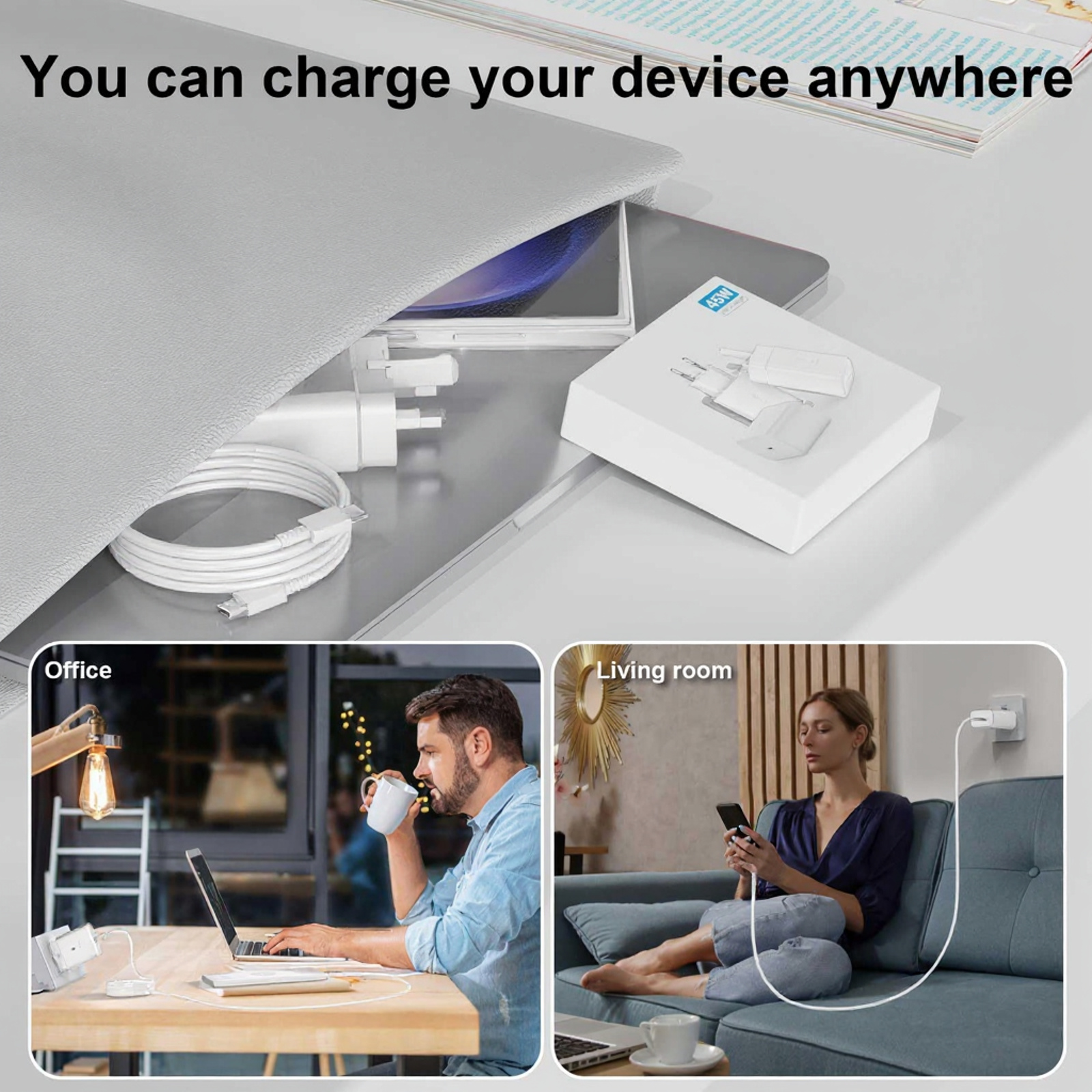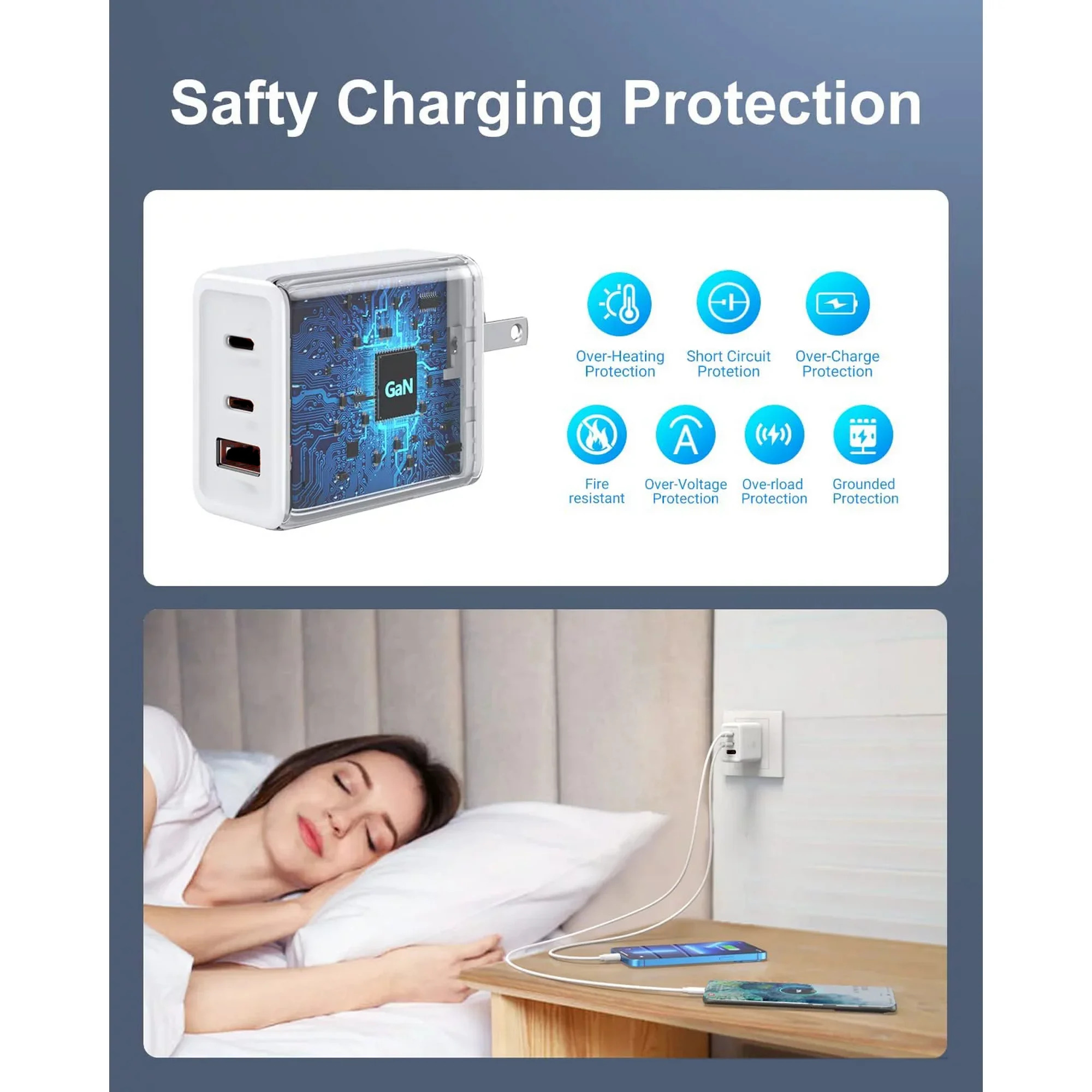 65W Super Fast Multi-Port Wall Charger with 1M USB-C Braided Cable