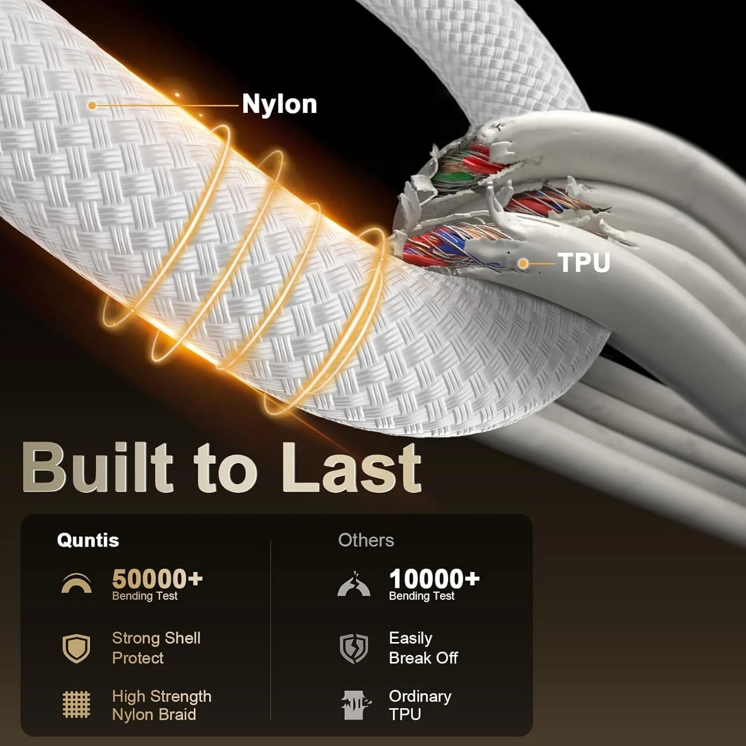 Ultra-durable 2M USB-C to USB-C Cable with Nylon Braided design, supporting up to 240W PD 3.1 fast charging and high-speed data transfer for smartphones, tablets, and laptops.