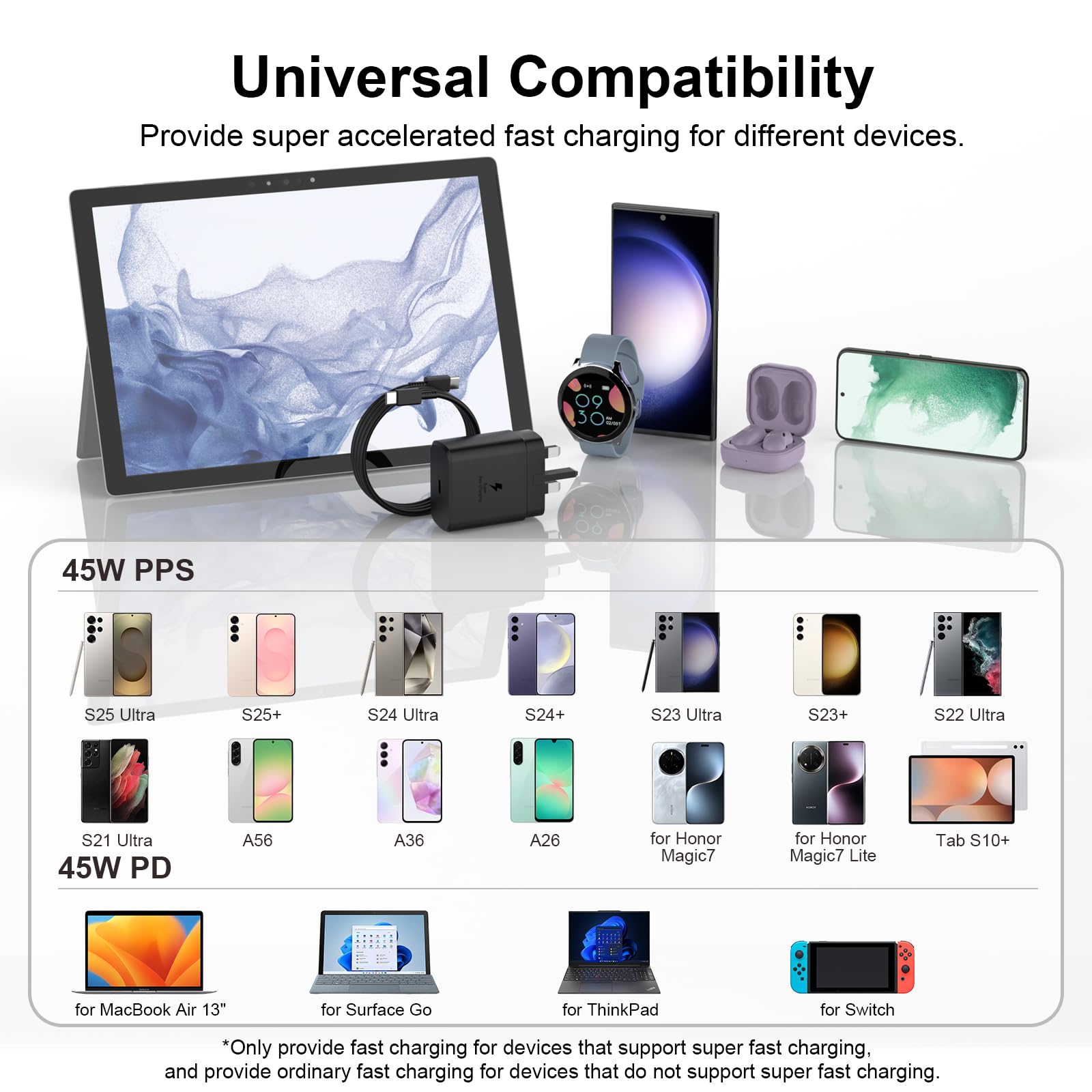 Power up at lightning speed with this 45W Super Fast Charger featuring a 1.5 M durable cable. Compatible with fast‑charging devices, it delivers reliable, efficient power for phones, tablets, and more — perfect for home, office, or travel.